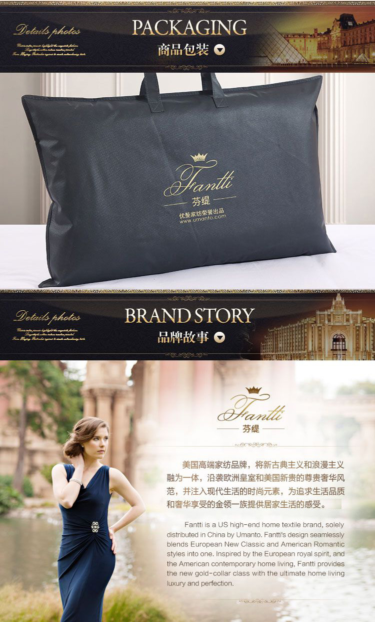 优曼集团(Umanto Group Ltd.)是美国家纺用品企业,营造家居时尚空间,推崇舒适、优雅、品质的生活方式。产品设计风格融合美式风情与东方文化,更把产品带给全球顾客。优曼集团旗下有Umanto、Vena Rosa、Fantti、Vena Rosa Kids四个子品牌。Fantti芬缇将新古典主义和浪漫主义融为一体,沿袭欧洲皇室和美国新贵的尊贵奢华风范,并注入现代生活的时尚元素,为追求生活品质和奢华享受的金领一族提供居家生活的极致感受。